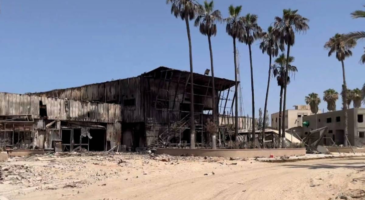 صالة المغادرين بمعبر رفح بعد أن حرقه جيش الاحتلال