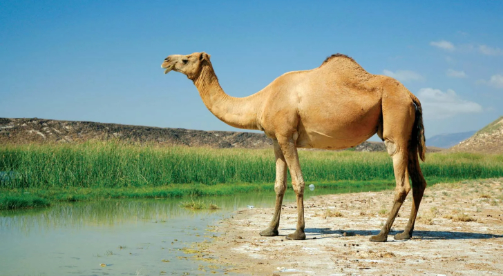 إبل يقف بقرب بركة ماء - تعبيرية