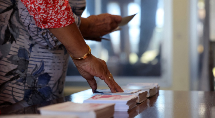 ناخب يجمع أوراق الاقتراع للتصويت في الجولة الأولى من الانتخابات البرلمانية