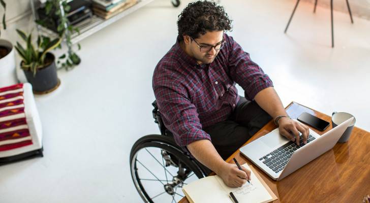 شخص من ذوي الإعاقة الحركية يقوم بتأدية عمله - تعبيرية