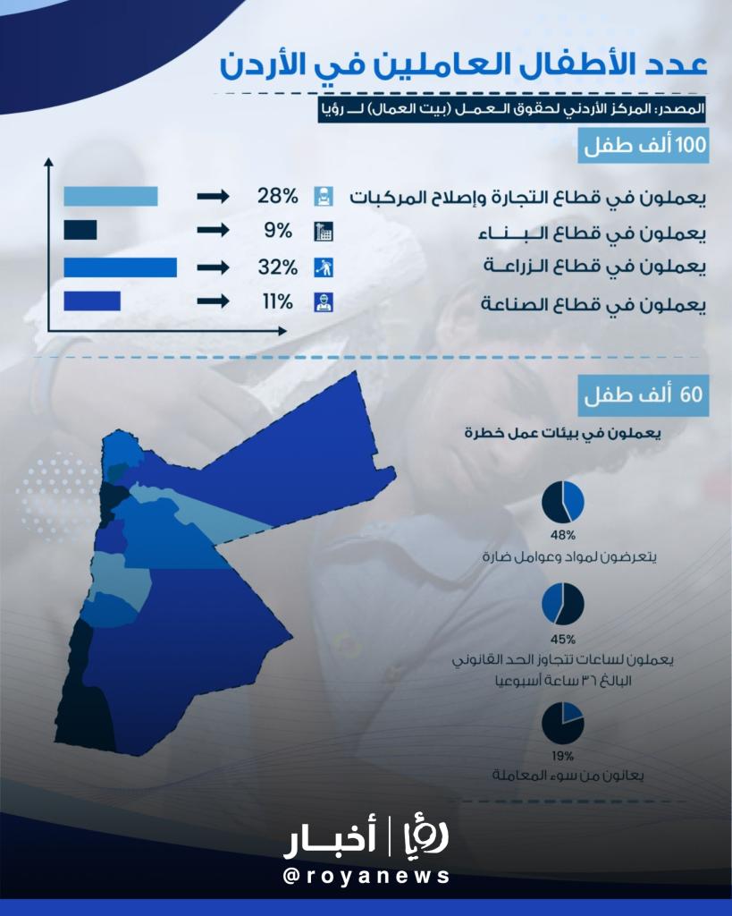 "بيت العمال" لـ"رؤيا": عدد الأطفال العاملين في الأردن يتجاوز 100 ألف طفل "إنفوجرافيك"