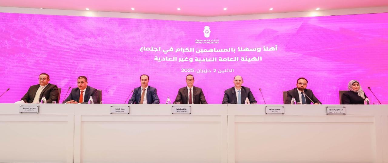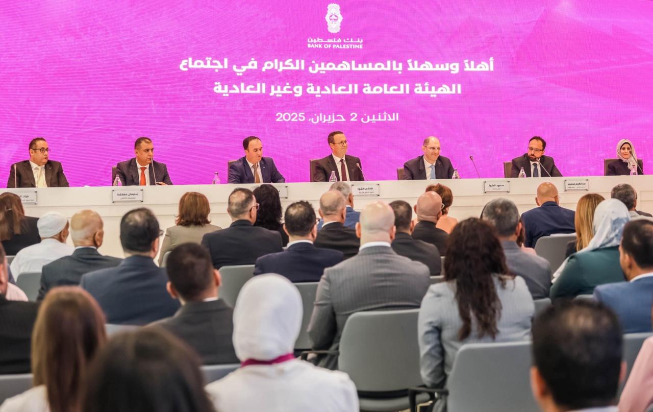 الهيئة العامة لـ "بنك فلسطين" تصادق على رفع رأس المال إلى 350 مليون دولار