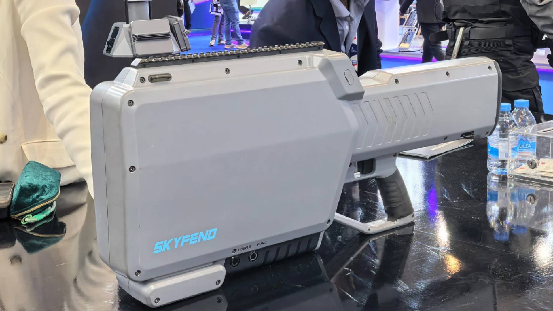 تقنية صينية جديدة لتعطيل الدرونات بمدى 3 كيلومترات وبطارية تدوم 8 ساعات شركة SkyFend خلال مشاركتها في معرض دبي للطيران 11-21
